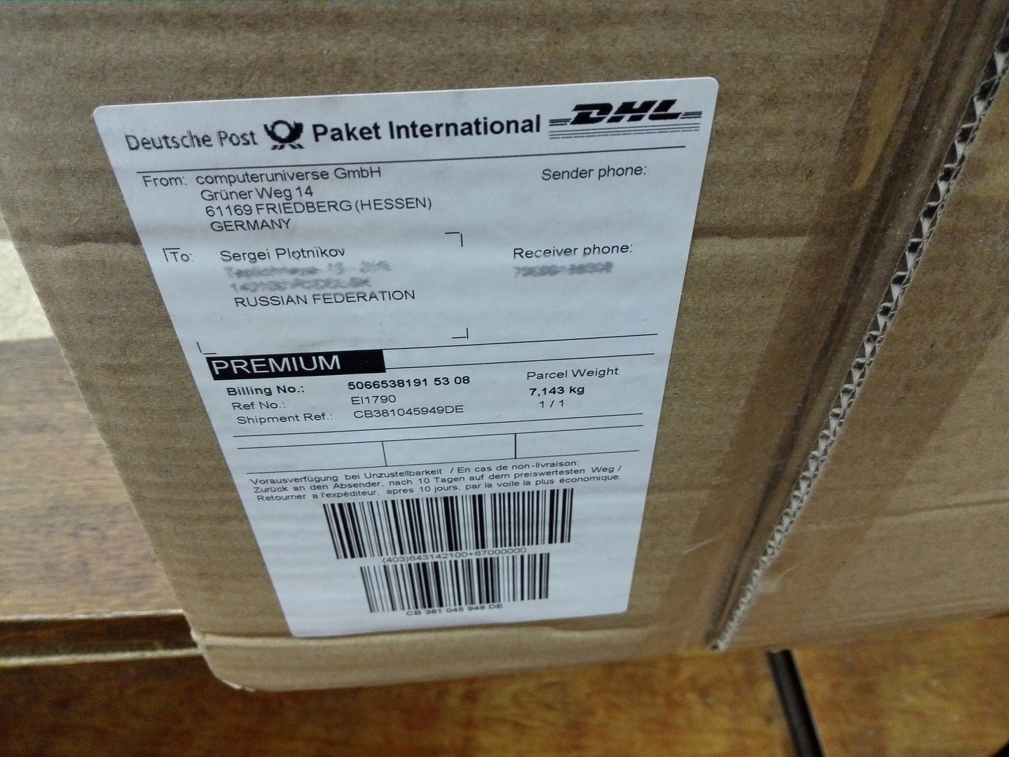 Главный минус покупки в Computeruniverse — это транспортировка груза. По землям неметчины ваш заказ везет DHL. А вот дальше посылка передается «Почте России». Я заказывал железо в Computeruniverse несколько раз. Тьфу-тьфу-тьфу, обошлось без проблем. Но все может быть. От этого, к сожалению, никто не застрахован.