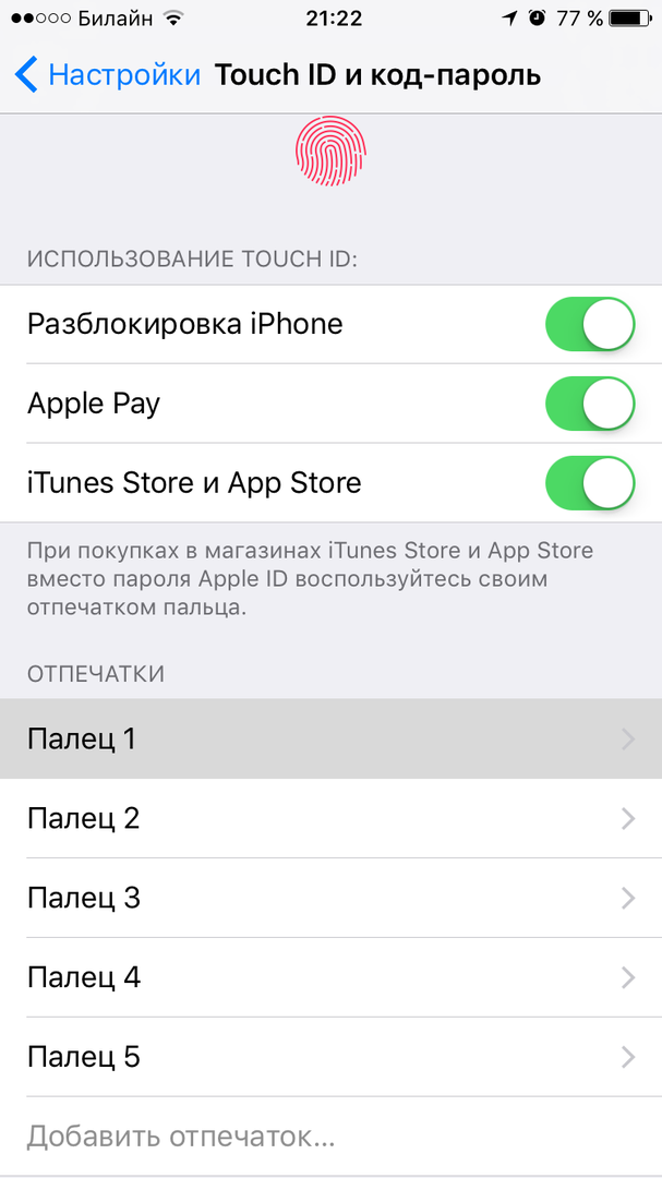 Зайдите в Настройки — «Touch ID и код-пароль» — «Добавить отпечаток». И следуйте инструкциям на экране: несколько раз коснитесь носом кнопки «Домой» смартфона. Желательно, конечно, перед этим немного вытереть нос или просто умыться.