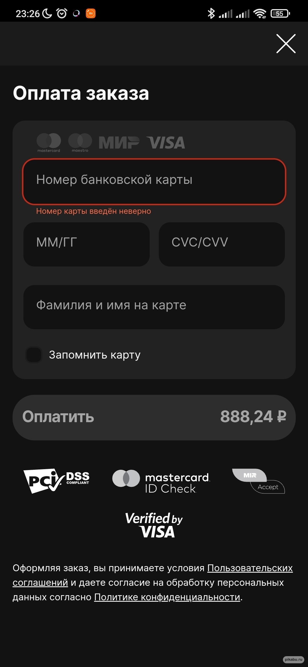 Затем эту возможность спешно убрали и оставили просто поле ввода данных банковской карты: