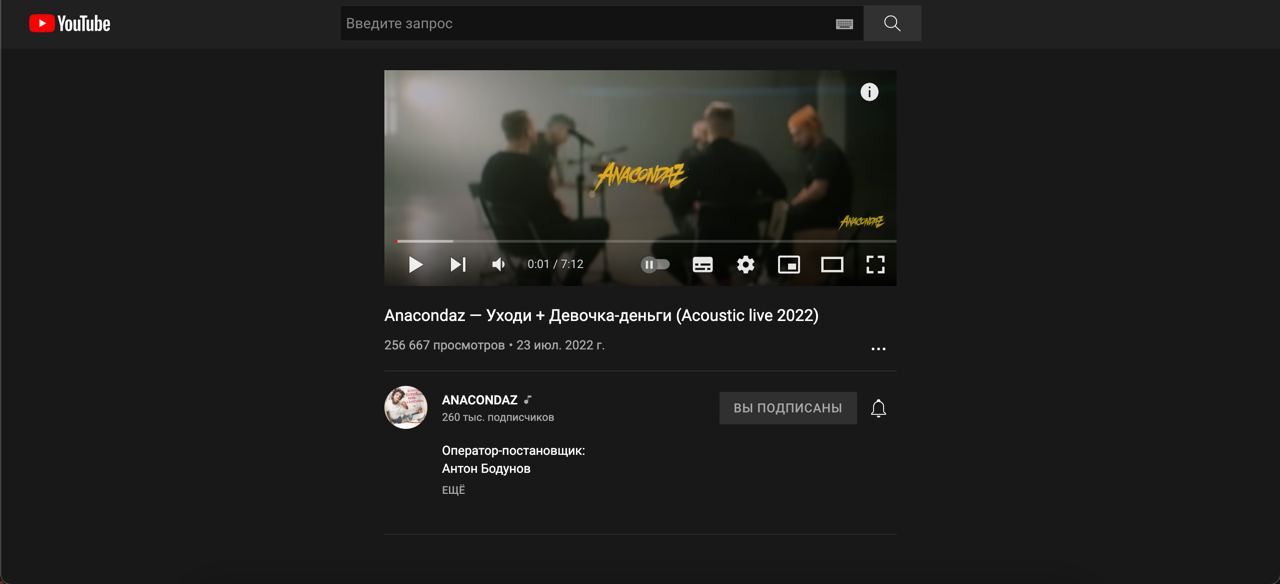 На странице с запущенным видео больше нет рекомендаций и комментариев, только видеоплеер, название канала и описание ролика.