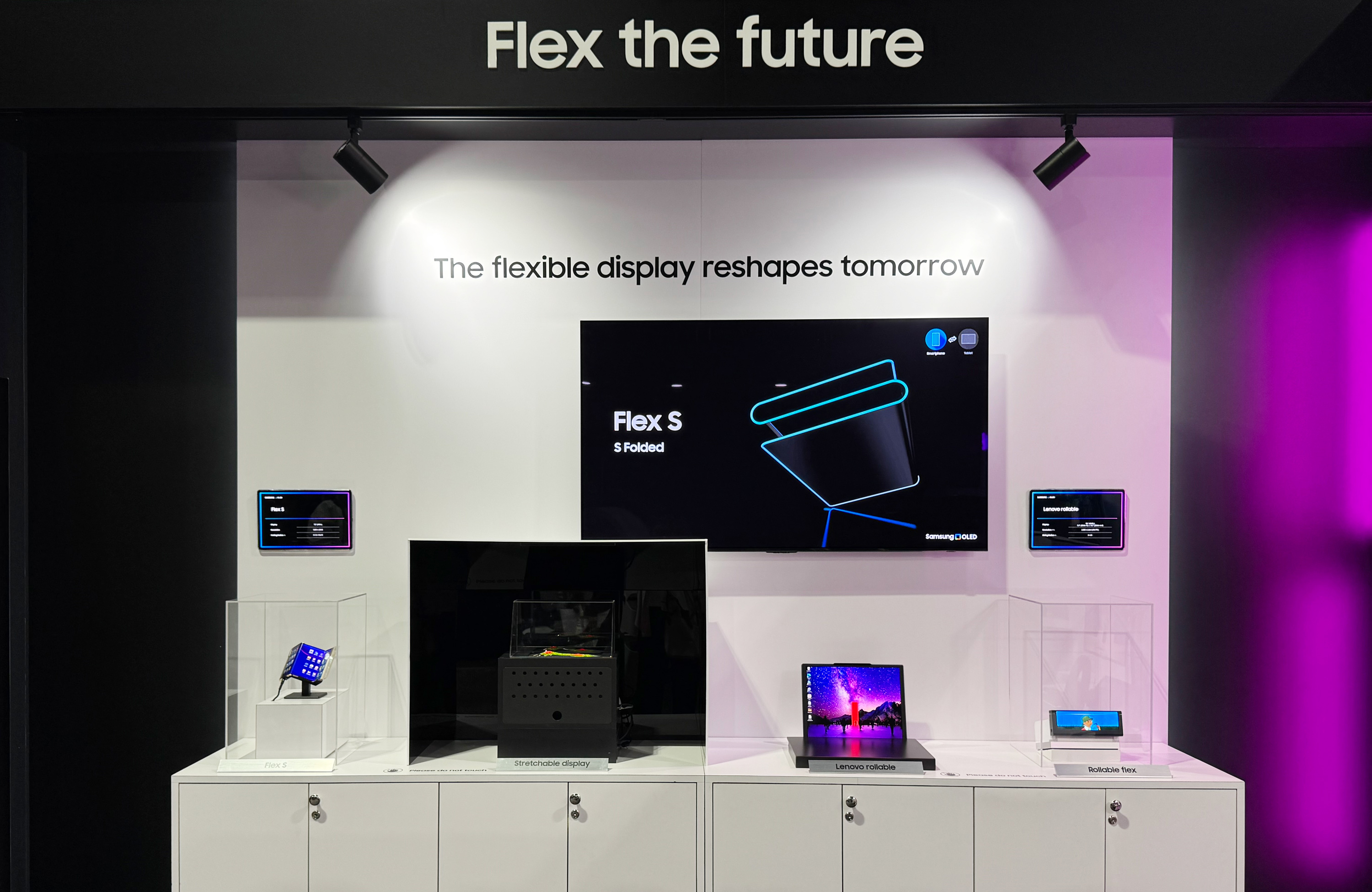 Кроме того, Samsung показала и другие дисплейные инновации: белый OLEDoS-панель, два QD-OLED монитора для игр, гибкий OLED-дисплей, складывающийся и сворачиваемый 12,4-дюймовый экран, многоразово складывающийся OLED и растягиваемый micro-LED-дисплей.