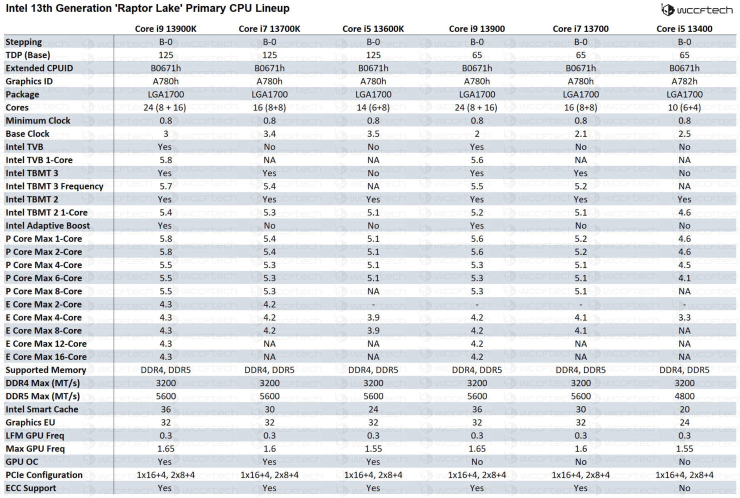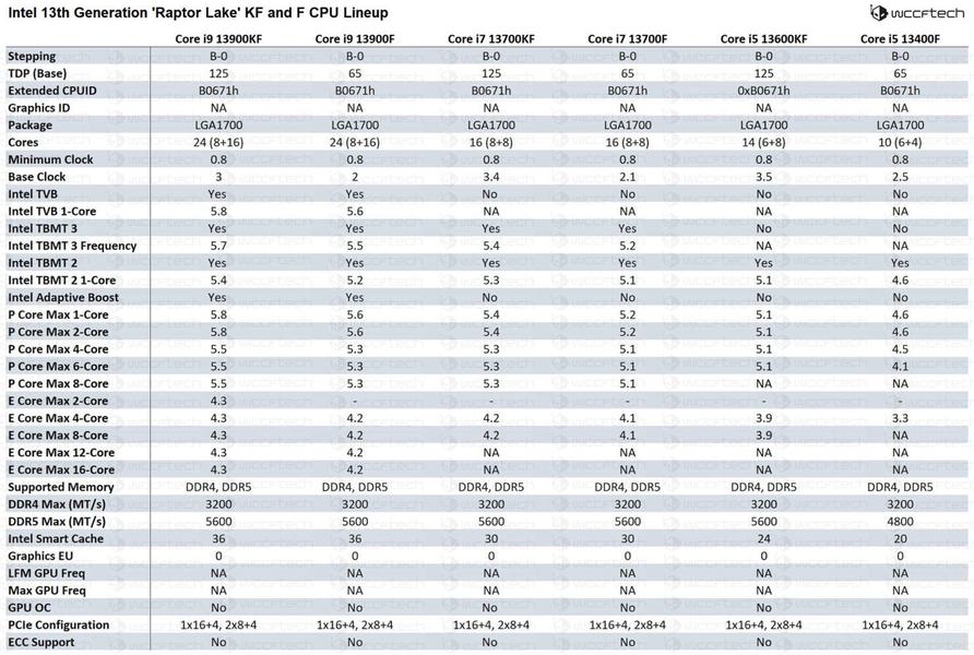 В данной линейке TDP будет варьироваться от 125 Вт для серии K до 65 Вт для серии без K. Количество ядер будет меняться от 24 до 10.