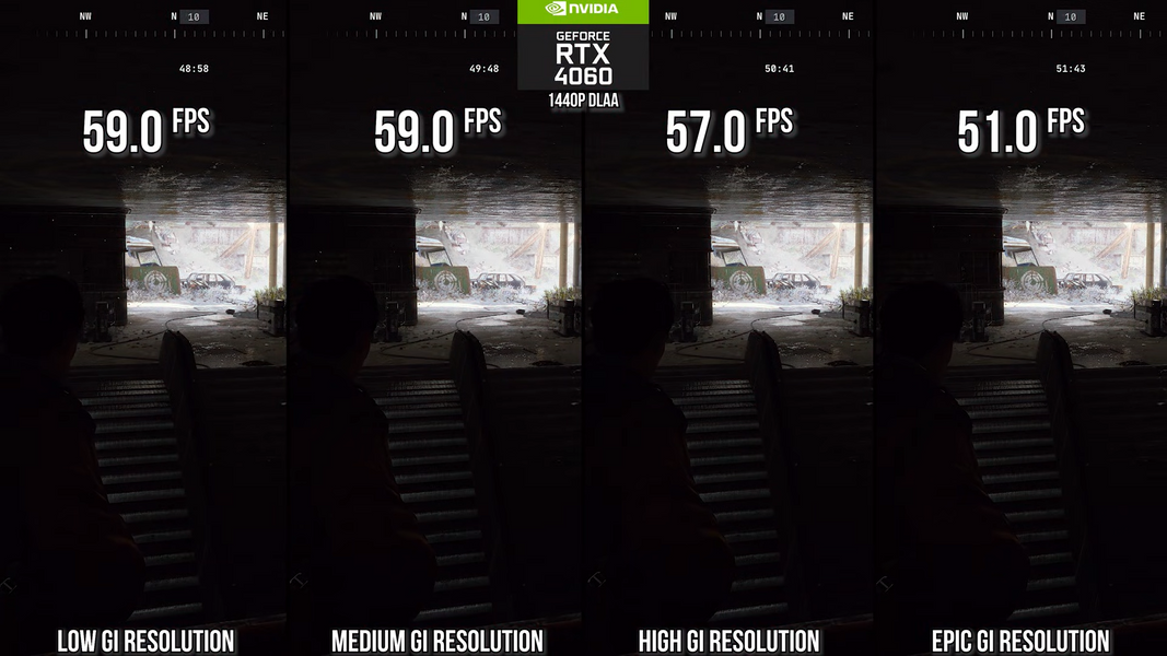 Digital Foundry также поделились настройками для прироста производительности: снижение параметров Dynamic RTGI и Global Illumination Resolution с Epic до High почти не влияет на качество картинки, но повышает fps более чем на 20%.