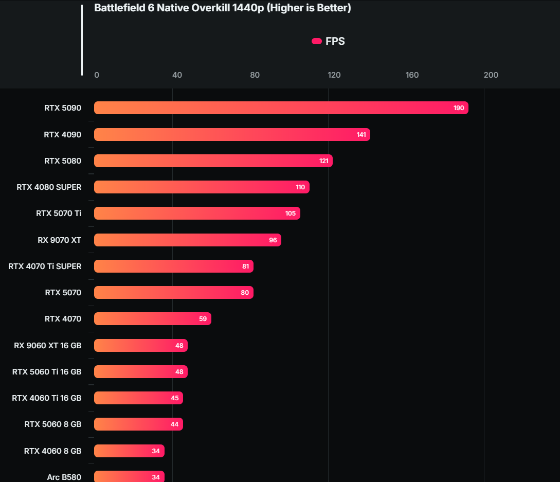 Но есть варианты и от NVIDIAРедакция Wccftech протестировала 15 современных видеокарт в Battlefield 6 с максимальным пресетом Overkill при разрешениях 1080p, 1440p и 4K, чтобы определить лучшие решения для игры.
