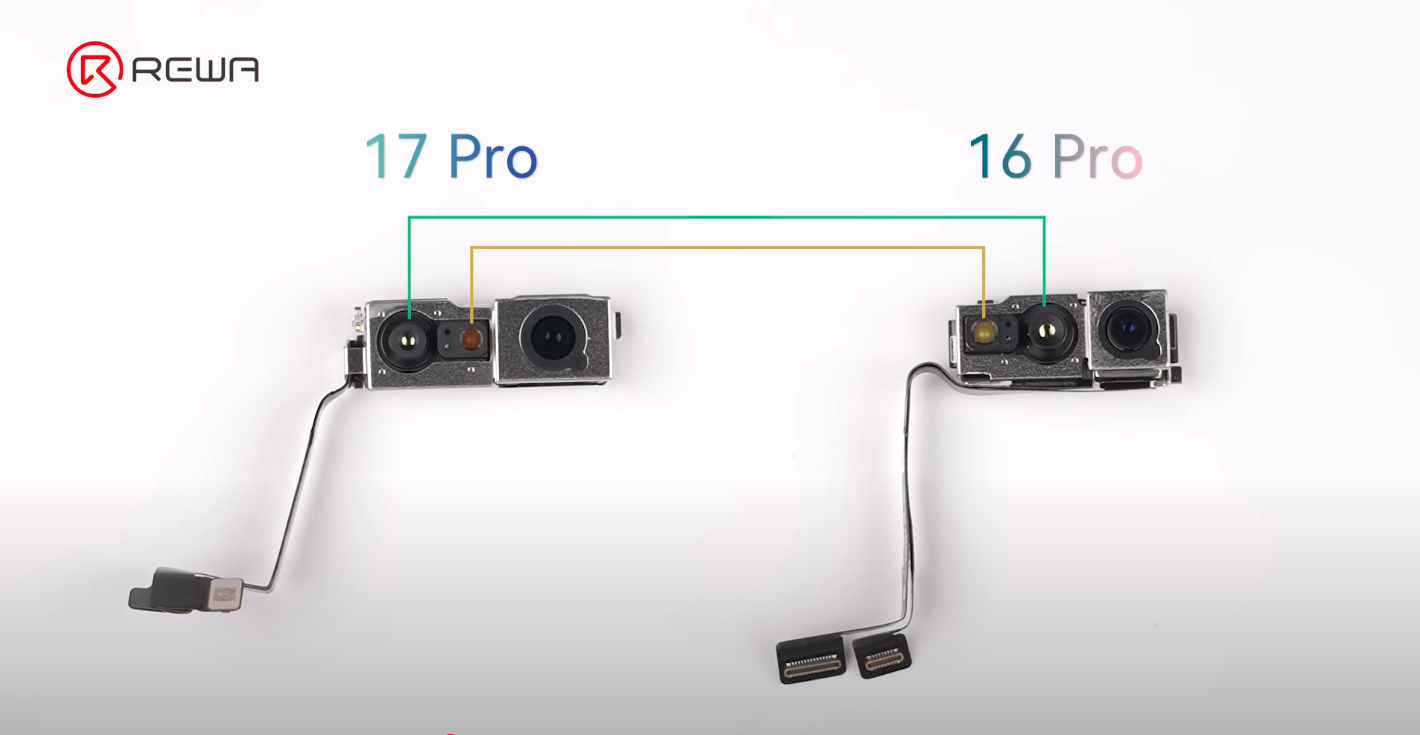 Сначала снимается экран, затем защитная пластина с батареей. Материнская плата iPhone 17 Pro содержит множество разъёмов, поэтому её снятие требует осторожности. Модуль задних камер стал заметно больше, чем у предыдущей модели, а фронтальная камера получила более крупные сенсоры. При этом сама плата уменьшилась и компоненты на ней расположены плотнее.
