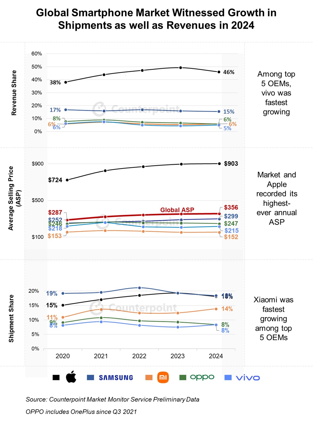 Это абсолютный рекордПо данным аналитиков агентства Counterpoint Research, Apple не просто лидирует по проданным в денежном выражении iPhone. Согласно отчёту, за первый квартал 2025 года, вендор занял 46% мирового рынка смартфонов.