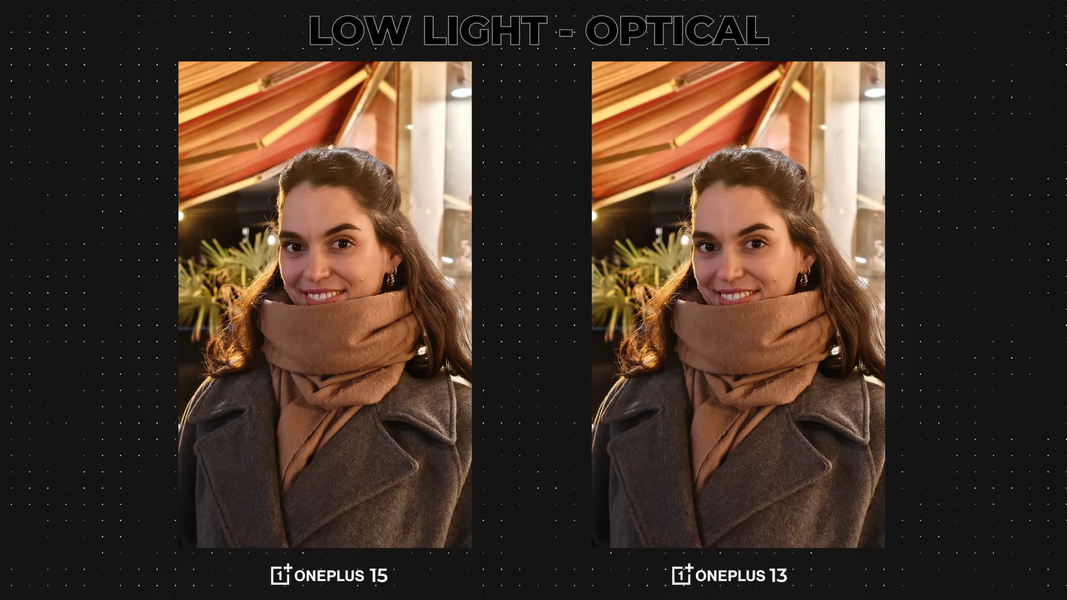 Что касается камер, то размеры сенсоров у OnePlus 15 стали меньше, чем у 13-го. С примерами снимков вы можете ознакомиться ниже. Фотографии на 15-й получаются с более реалистичными цветами и более низким уровнем контраста в большинстве сценариев. Единственная ситуация, когда качество у новинки ухудшается, - это слабое освещение. Также у OnePlus 15 появился автофокус на фронтальной камере.