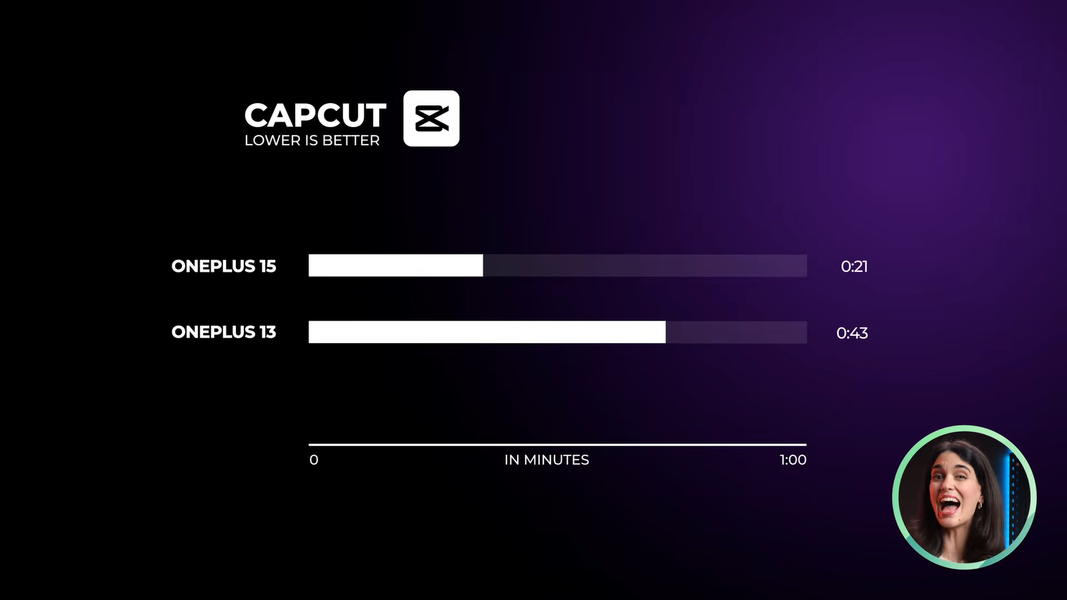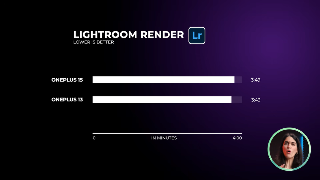 OnePlus 13 смог проработать в активном режиме использования 9 часов 35 минут, а 15-й - 12 часов 37 минут. До 100% устройства заряжаются примерно за одно и то же время: 52 минуты 19 секунд - OnePlus 15 и 52 минуты 45 секунд - OnePlus 13.