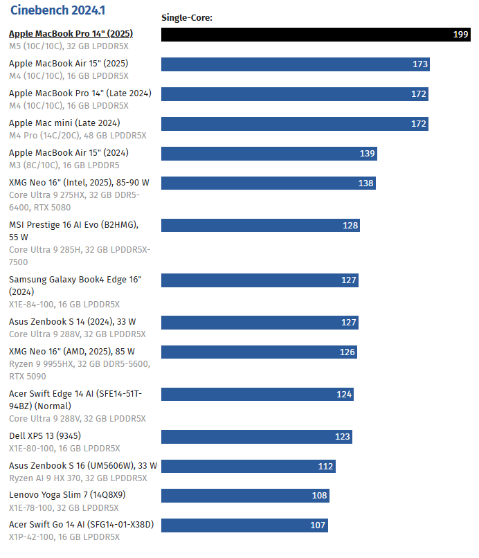 Чип M5 в MacBook Pro стал мощнейшим в одноядерном тесте — обогнал даже десктопные модели Intel и AMD