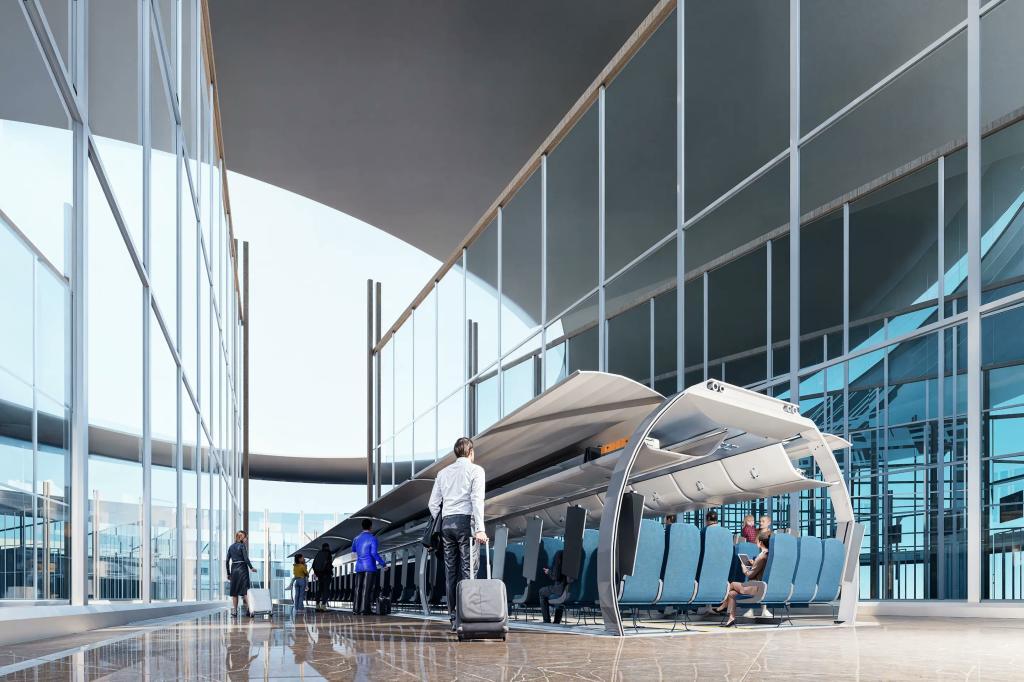 Места для пассажиров в этих цилиндрах будут расположены так же, как и в самолёте, что избавляет от необходимости стоять «в лабиринтах очередей и бороться с билетными вшами, которые толпятся в зоне посадки». Капсулы будут подъезжать к самолёту с поднятой хвостовой частью для загрузки пассажиров, затем хвост будет опускаться.