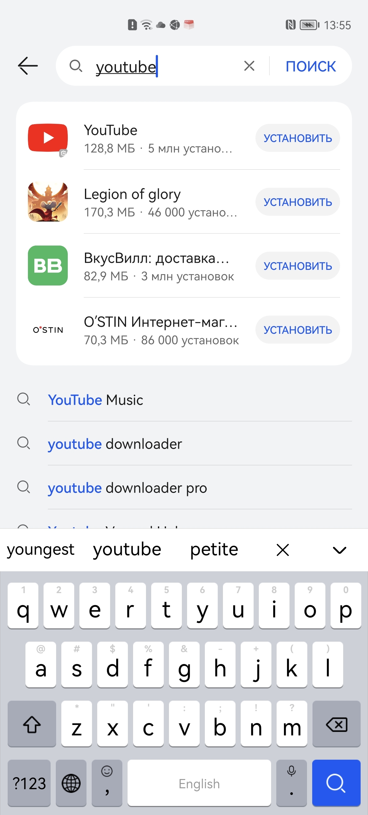 Шаг 1: Зайдите в AppGallery и введите YouTube в поисковой строке.