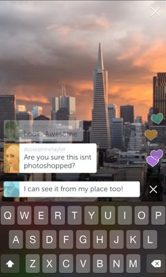 Запись, сделанная с помощью сервиса, хранится на сервере в течение суток. Автор может сделать ее доступной для повторного просмотра или удалить в любой момент. Подписчики могут комментировать видео, отвечать на сообщения других пользователей и выражать свои эмоции с помощью пиктограмм в форме «сердца». В версии для Android появилась возможность индивидуальной настройки push-уведомлений, а также больше не нужно загружать файл на сервер после окончания трансляции для того, чтобы подписчики могли пересмотреть видео.