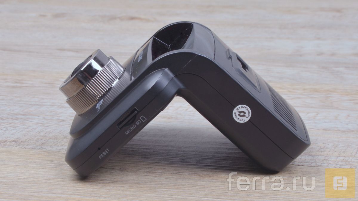 Внешнее отличие от предыдущей версии устройства есть только одно: раньше вокруг объектива была хромированная поверхность, дающая блики на солнце, которые могли испортить видео. Компания прислушалась к жалобам пользователей и сделала этот ободок из матового чёрного пластика, так что теперь никаких бликов от него быть не может. Помимо объектива на передней панели устройства находится блок для распознавания радаров, а больше ничего интересного здесь и нет.