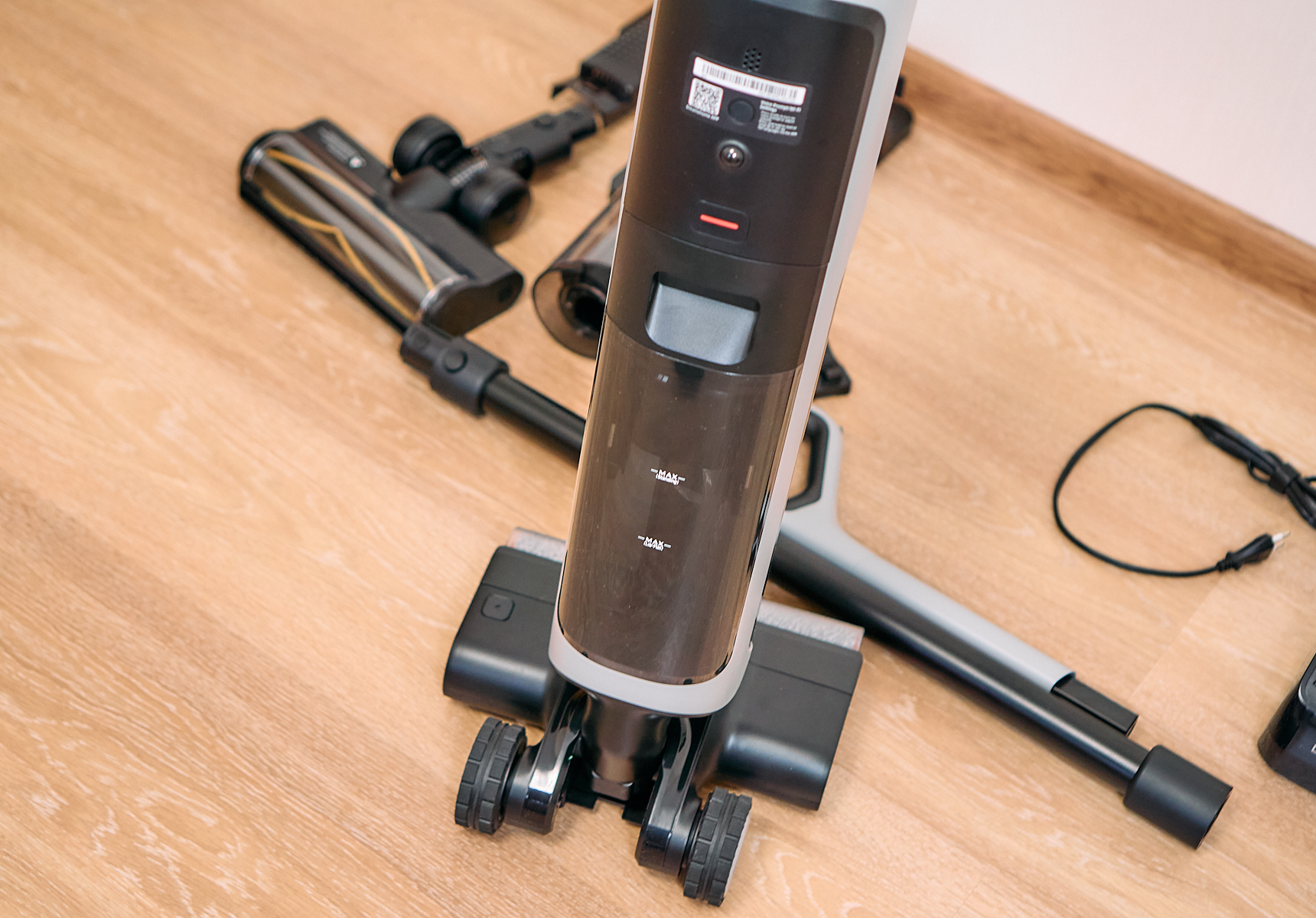 К сожалению, с этой трансформацией, как и в H12 Dual, снова магии не случилось, но о функциональности мы поговорим ещё позже. Здесь пока лишь отмечу слабое крепление штанги пылесоса для сухой уборки на соответствующей ей площадке. У H12 Dual крепление было лучше. А тут у меня проезжает рядом робот-пылесос, и в некоторых случаях роняет штангу пылесоса без особого даже нажима.