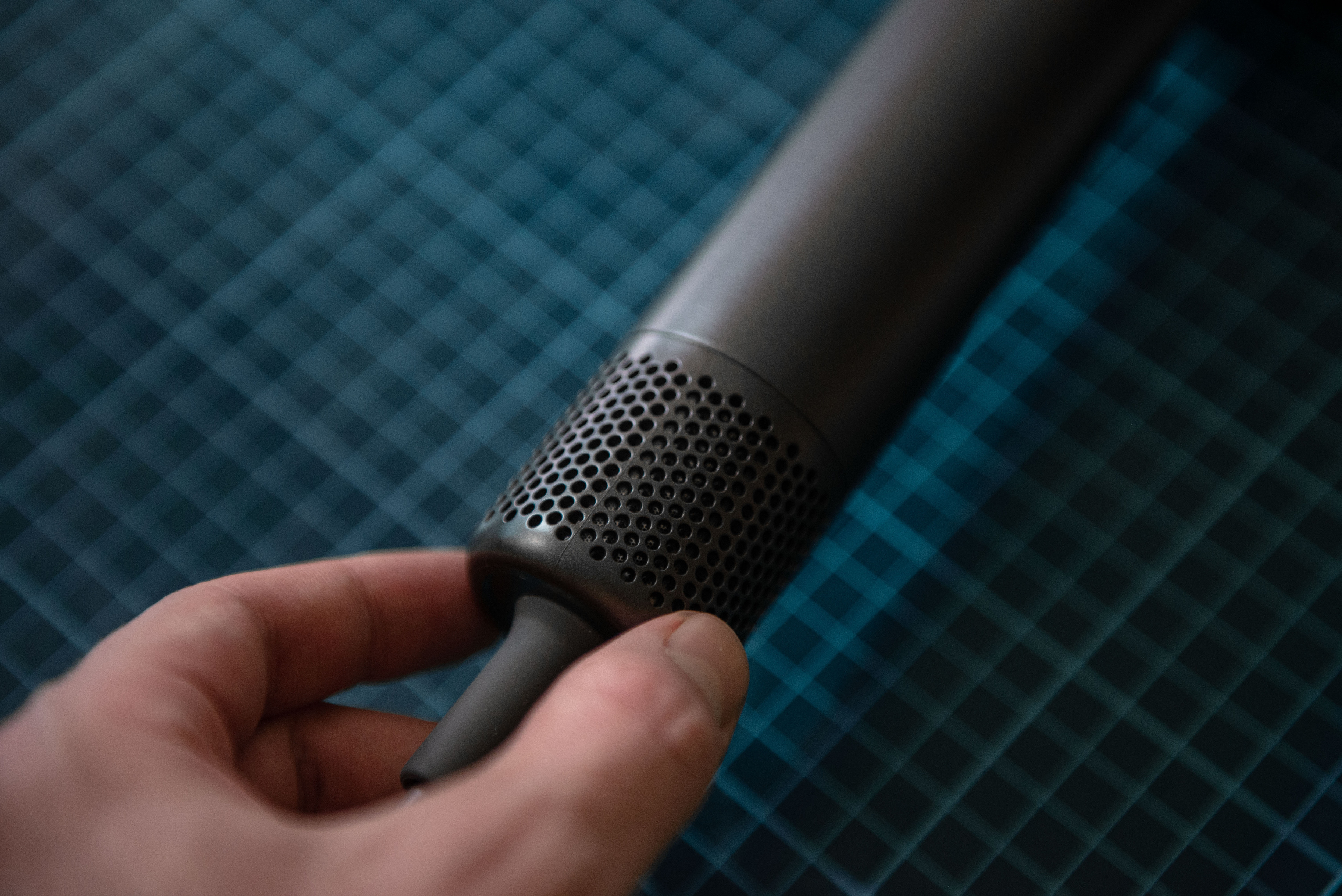 Магнитные в этом фене не только насадки, кстати. На магнитах держится еще и нижняя перфорированная крышка над местом, где фен забирает воздух. Снимается просто — достаточно просто потянуть за нее. Никаких защелкиваний, прокручиваний и прочих неудобных действий.