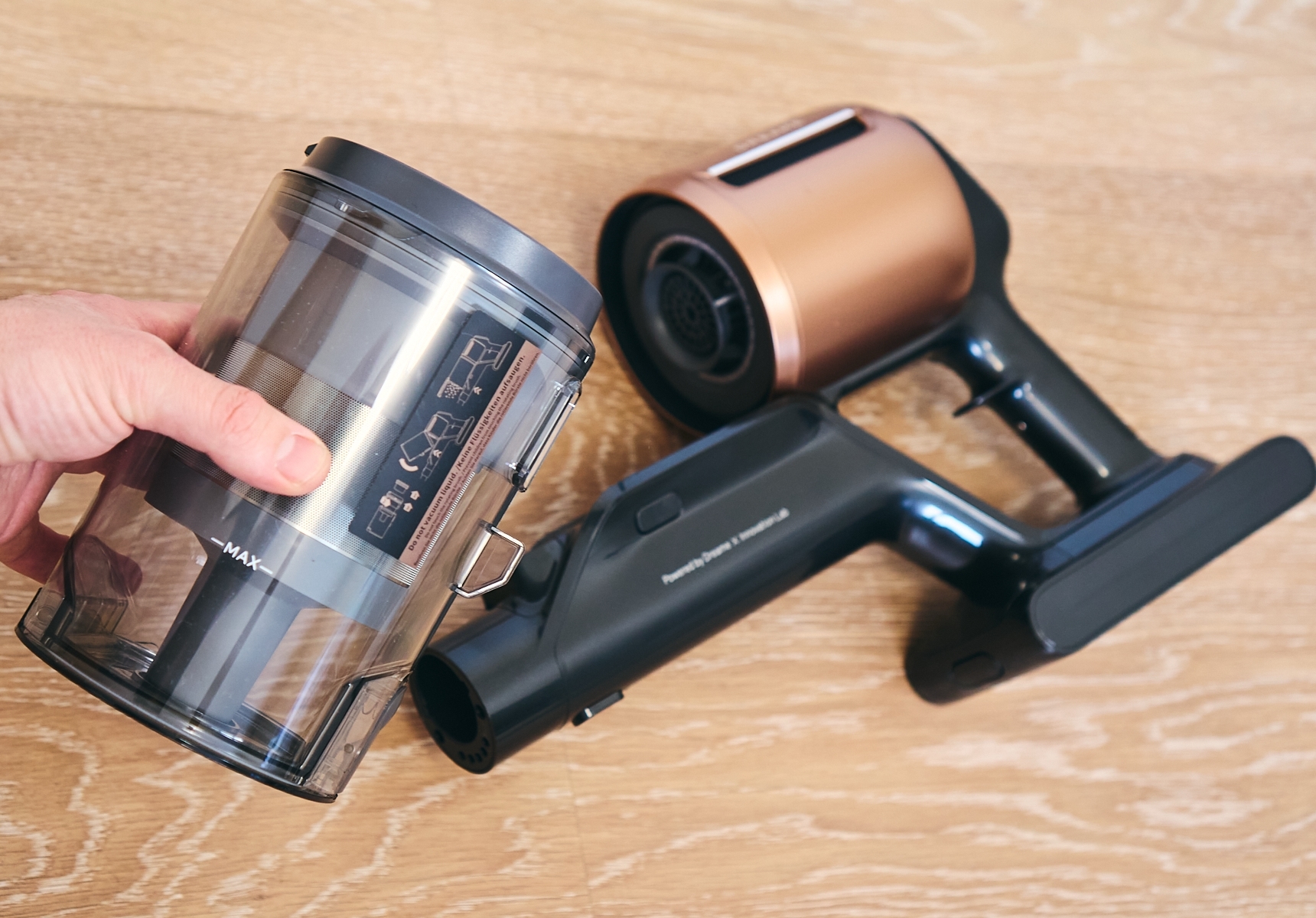 «Сердцем» пылесоса является мотор, вращающийся с частотой до 140 000 оборотов в минуту. Это обеспечивает мощность всасывания до 250 аВт в зависимости от насадки и выбранного режима работы.