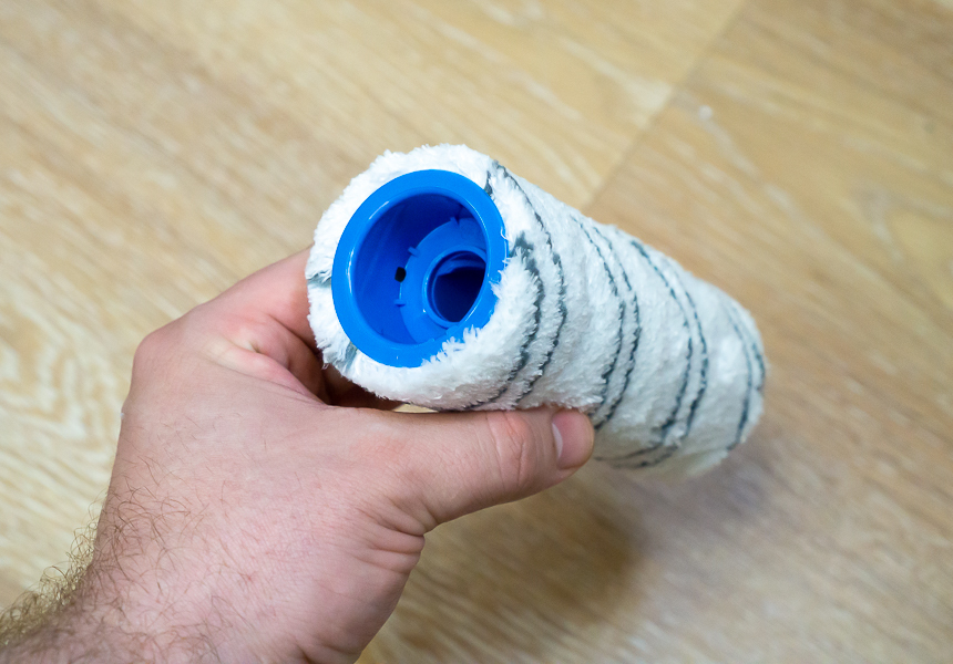 Итак, первым делом нужно нацепить валики — их в комплекте два вида. Те, что помягче — обычные, для любых поверхностей. Те, что с острыми пупырышками — для каменных поверхностей (я не стал пробовать их на ламинате и плитке).