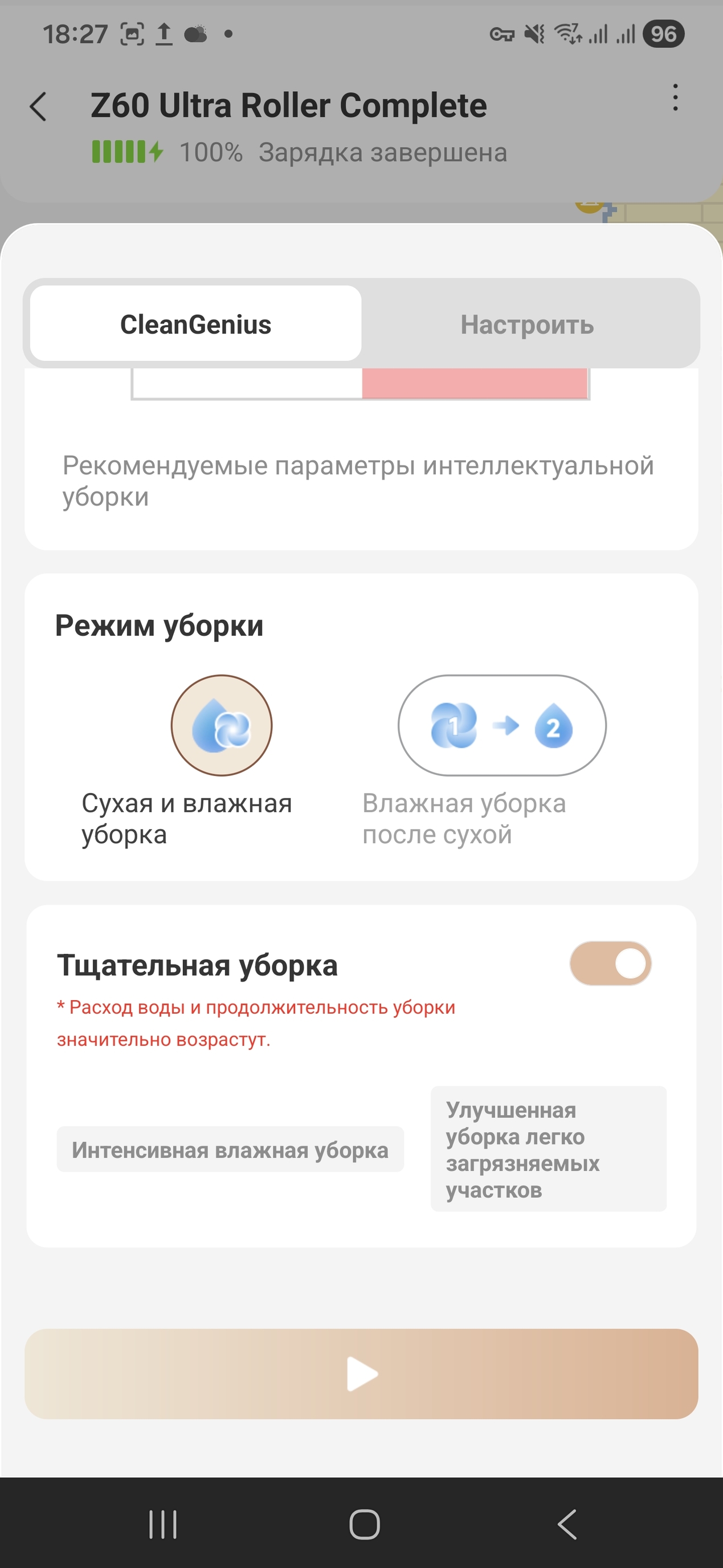 Плюс, как и у P50 Pro Ultra, даже когда уровень чистой воды в баке ещё сантиметра 3-4, робот отказывается запускаться, жалуясь на недостаток этой самой воды.