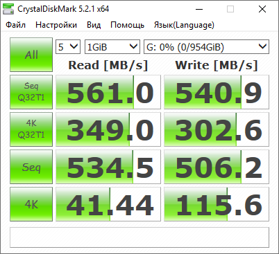 | Скорость последовательной записи | до 540 Мбайт/с |
