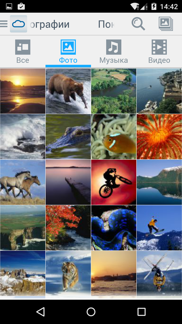 Главное меню WD My Cloud разделено на четыре основные вкладки: «Все», «Фото», «Музыка» и «Видео».
