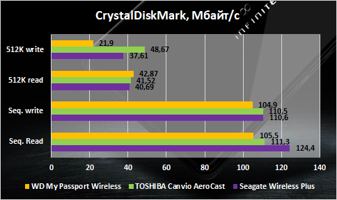 Результаты тестирования Seagate Wireless Plus, TOSHIBA Canvio AeroCast и WD My Passport Wireless в беспроводном режиме