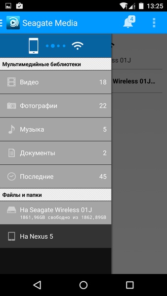Принцип работы Seagate Media схож с тем, что мы только что рассмотрели. Подключаемся при помощи приложения к жесткому диску и получаем доступ к папкам «Видео», «Фотографии», «Музыка» и так далее.