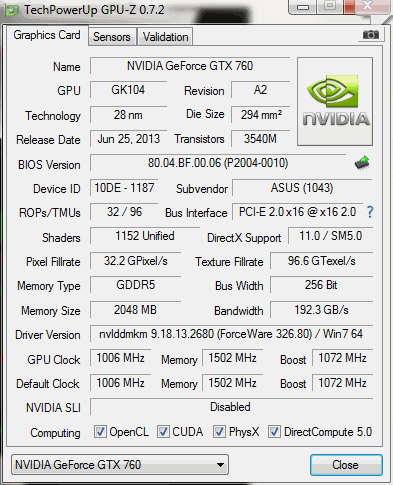 | NVIDIA GeForce GTX 760 | ASUS GeForce GTX 760 DirectCU II | NVIDIA GeForce GTX 770 | NVIDIA GeForce GTX 780 | ||||