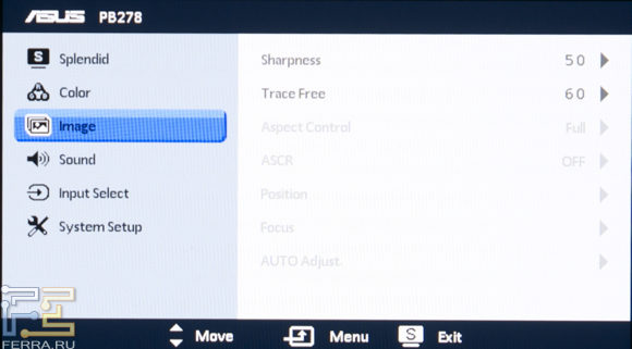 Меню осталось таким же простым и лаконичным, как и раньше. Расстраивает только то, что у монитора нет маленького джойстика, с помощью которого можно было бы удобно перемещаться по экранному меню. Впрочем, и к клавишам управления можно довольно быстро привыкнуть.