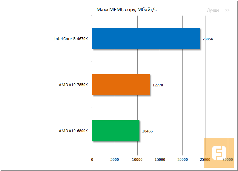 Этот тест свидетельствует о 14-процентном преимуществе A10-7850K над A10-6800K и всего лишь 10-процентном отставании от Core i5-4670K.