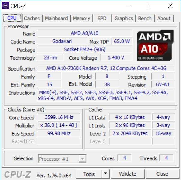 Максимальная частота новинки заявлена на уровне психологической отметки в 4 ГГц, но в большинстве случаев чип работает на дефолтной скорости 3,6 ГГц. Сразу скажу: именно поэтому A10-7860K почти всегда оказывается медленнее A8-7670K.