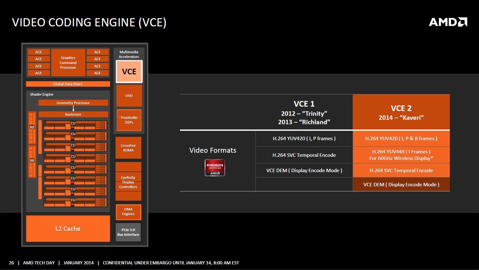 Наконец, графика получила усовершенствованные движки VCE и UVD.