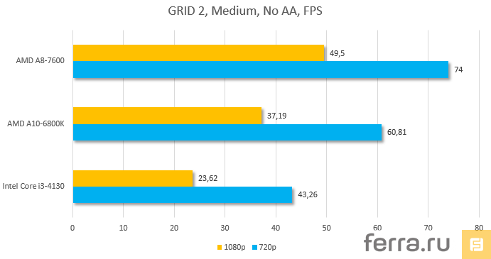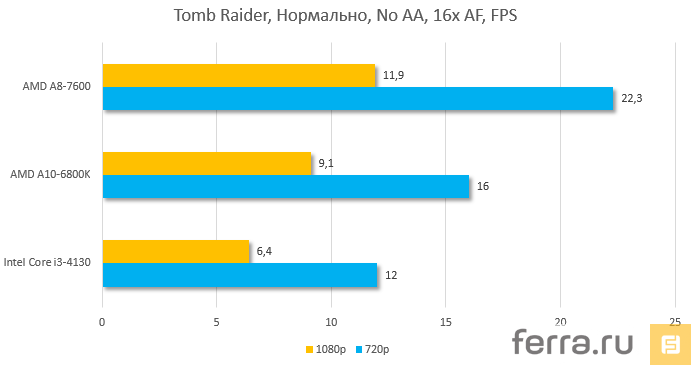 А теперь игры. Дабы сильно не «душить» встроенную графику, мы приняли решение не использовать антиалиазинг. Каждая игра запускалась как в разрешении Full HD, так и в 720p.
