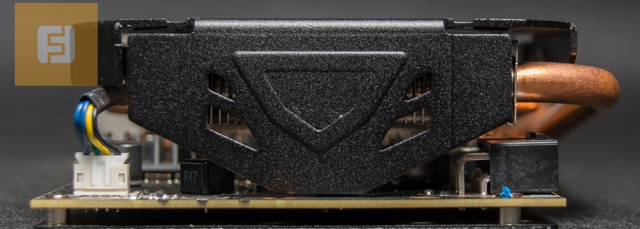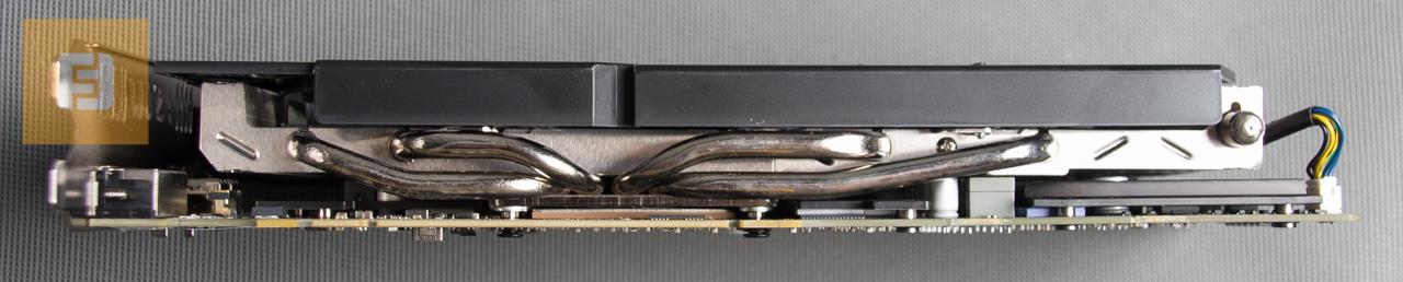 Кулер Double Dissipation состоит из массивного радиатора, а тот, в свою очередь, из шести теплотрубок, соединенных при помощи большой медной пластины. Исходя из размеров GPU, получается, что с «камнем» через подошву контактируют лишь четыре трубки.
