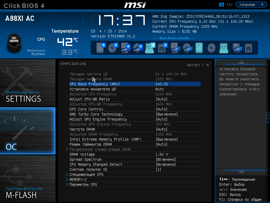 Профили разгона UEFI MSI A88XI AC