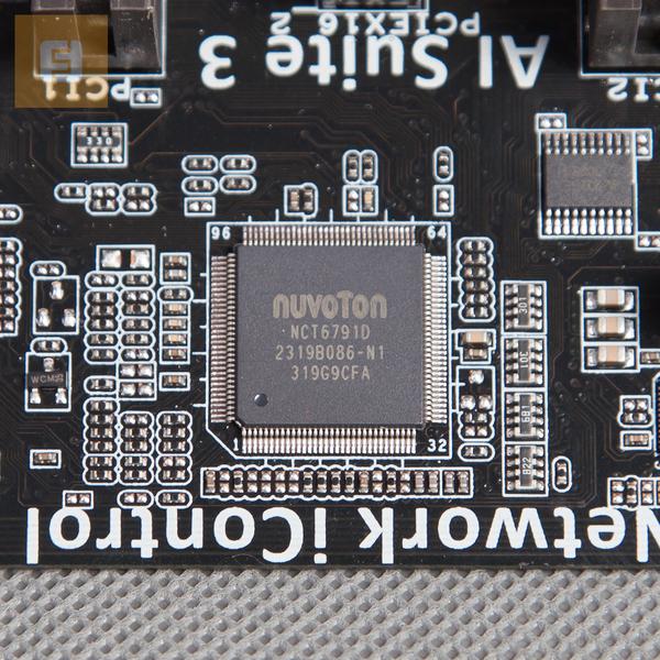 За напряжения питания, скорость вращения корпусных вентиляторов и прочие параметры, которые можно задавать вручную, отвечают три цифровых ШИМ-контроллера: Digi+, TPU и Nuvoton NCT6791D.