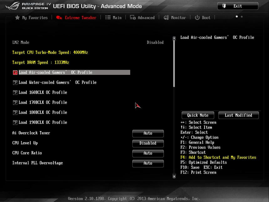 • Профиль Load Air-cooled Gamers устанавливает следующие множители для каждого ядра процессора: 47, 47, 46, 45, 45. При этом напряжение VCore увеличивается до 1,5 В. В меню BIOS показатель отображается красным цветом.