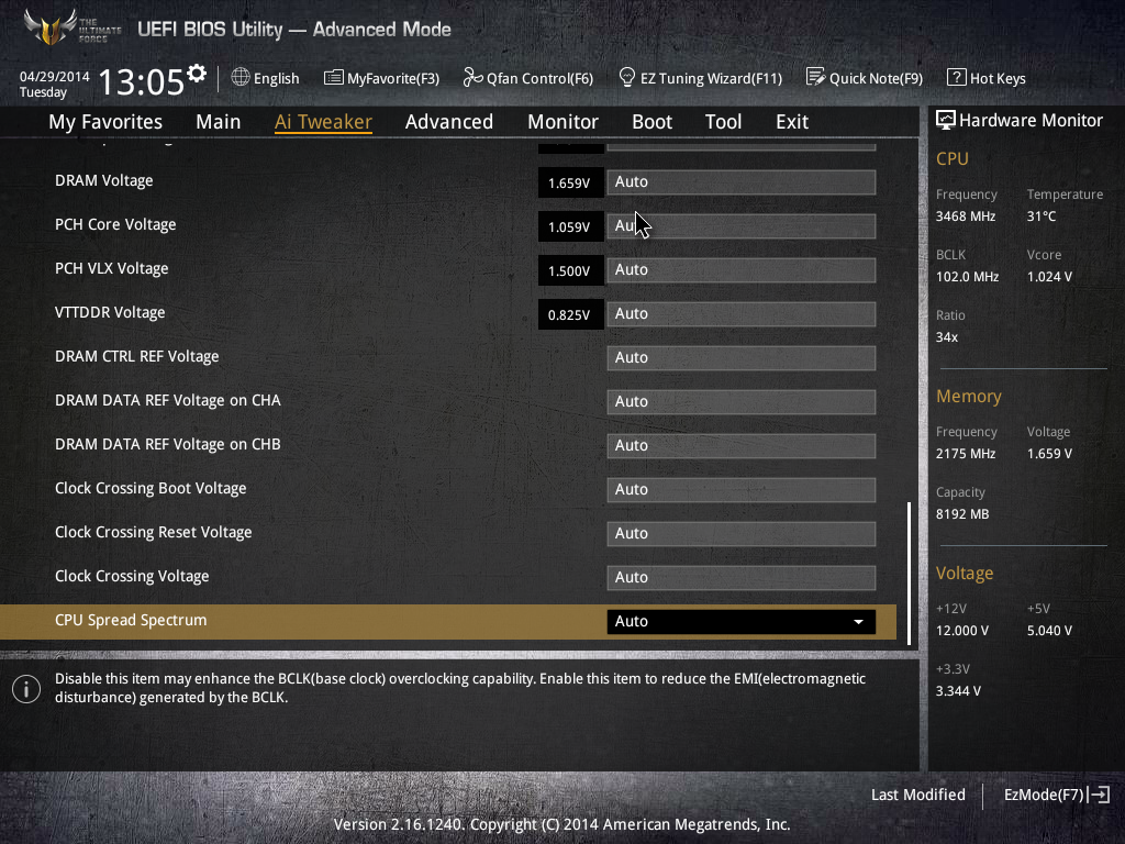 Напряжение, подаваемое на центральный процессор, можно изменять с очень маленьким шагом 0,001 В. Разность потенциалов для памяти — с шагом 0,005 В. Напряжение для PCH Core, PCH VLX и VTTDDR — с шагом 0,0125 В.