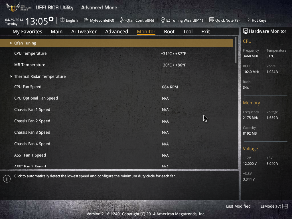 Есть функция Q-Fan_tuning, которая позволяет для каждого подключенного вентилятора с ШИМ задать определенный алгоритм скорости вращения.