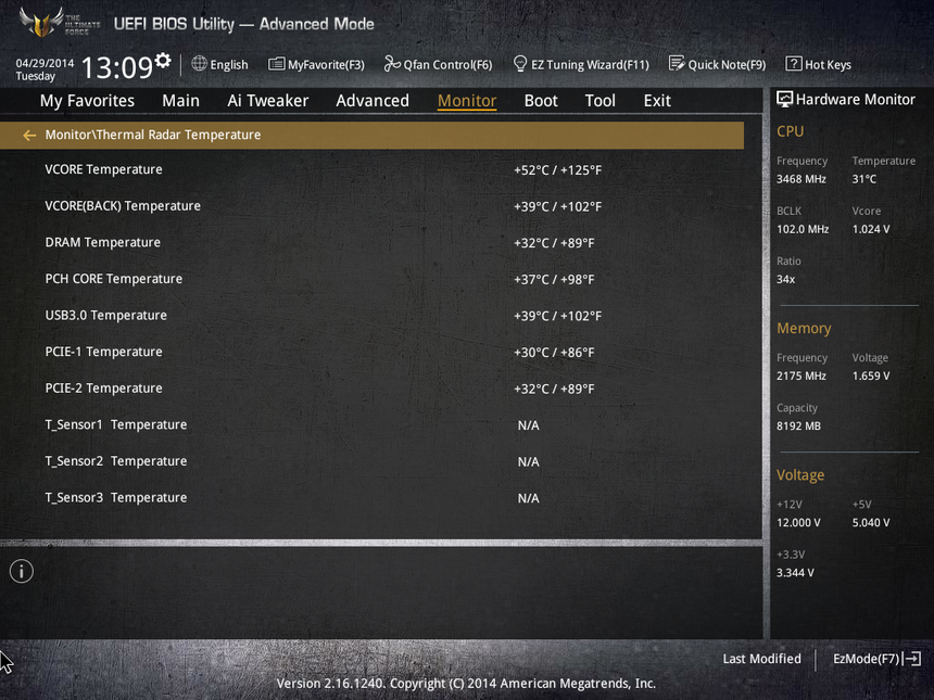 Вкладка Main тоже не содержит каких-либо новшеств. Разве что в правом углу появилось некое подобие виджета Hardware Monitor — одноименной функции, расположенной во вкладке Monitor.