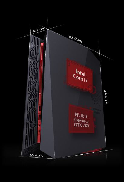 Новинка компании ASUS заинтересует всех, кто устал от шумных исполинов в корпусе Midi Tower. Объём корпуса ROG G20 составляет всего лишь 12,5 литров, которые в максимальной комплектации приютят процессор Intel Core i7-4790 и видеокарту NVIDIA GTX 780. Инженеры ASUS позаботились, чтобы игровая система не превратилась в «низко летящий самолёт» —уровень шума в режиме покоя не превысит 25 дБ, а энергопотребление — около 20 ватт.