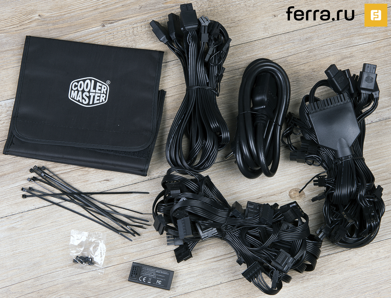 В комплекте есть кабель для подключения к внутреннему разъему USB 2.0. Чтобы управлять блоком питания прямо из-под операционной системы. А еще в наличии отстегиваемый Bluetooth-модуль. Он необходим для взаимодействия с устройством при помощи смартфона. Это оригинальная «фишка» MasterWatt Maker 1200. Я такую пока нигде не встречал.