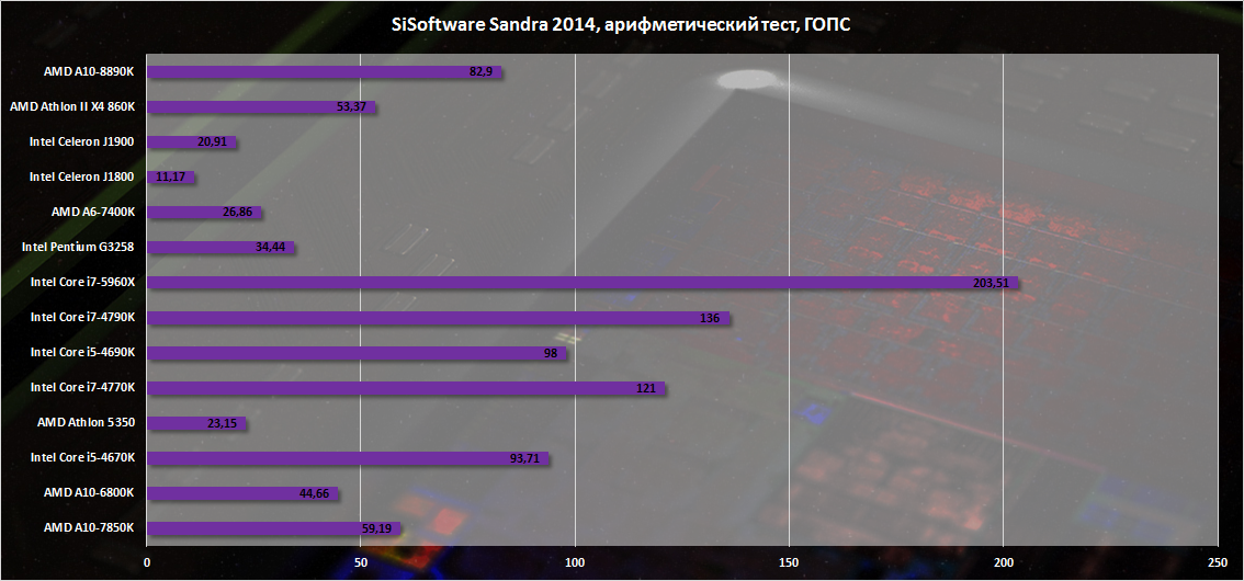 Теперь давайте перейдем к изучению результатов производительности вычислительной части. Как я уже говорил, A10-8890K — это шестиядерный гибридный процессор. Поэтому в многопоточных приложениях следует ожидать заметный рост быстродействия в сравнении с A10-7850K.