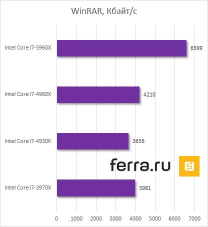 К сожалению, у меня не было времени, чтобы перетестировать процессоры Ivy Bridge-E по новой методике. Поэтому сравнивать Core i7-3790X, Core i7-4820K, Core i7-4930K, Core i7-4960X с Core i7-5960X пришлось по старой.
