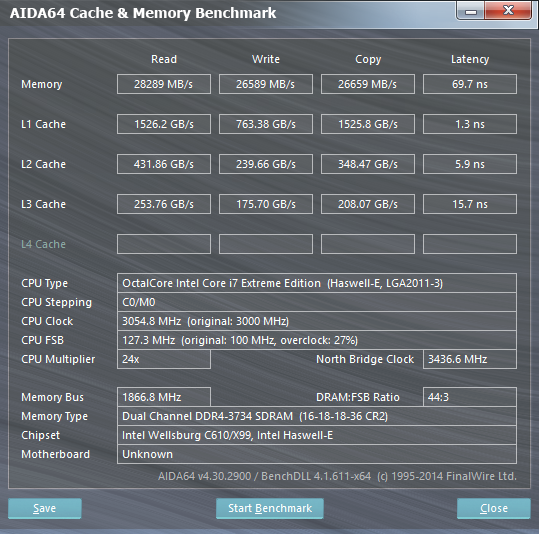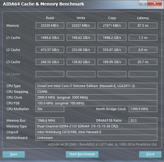 Повторюсь, результаты тестирования оказались вполне предсказуемыми. В AIDA64 DDR3 в двухканальном режиме работает быстрее. Сказывается наличие более низких таймингов. Однако отставание небольшое. Поэтому вряд ли Core i7-5960X много теряет. Тем более, что есть поддержка 4-канального режима.