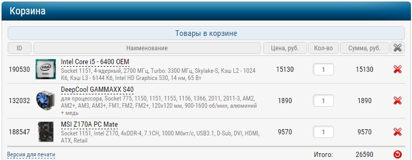 | Процессор | Intel Core i5-6400 — 15 130 руб. | Intel Core i5-6600 — 18 120 руб. |