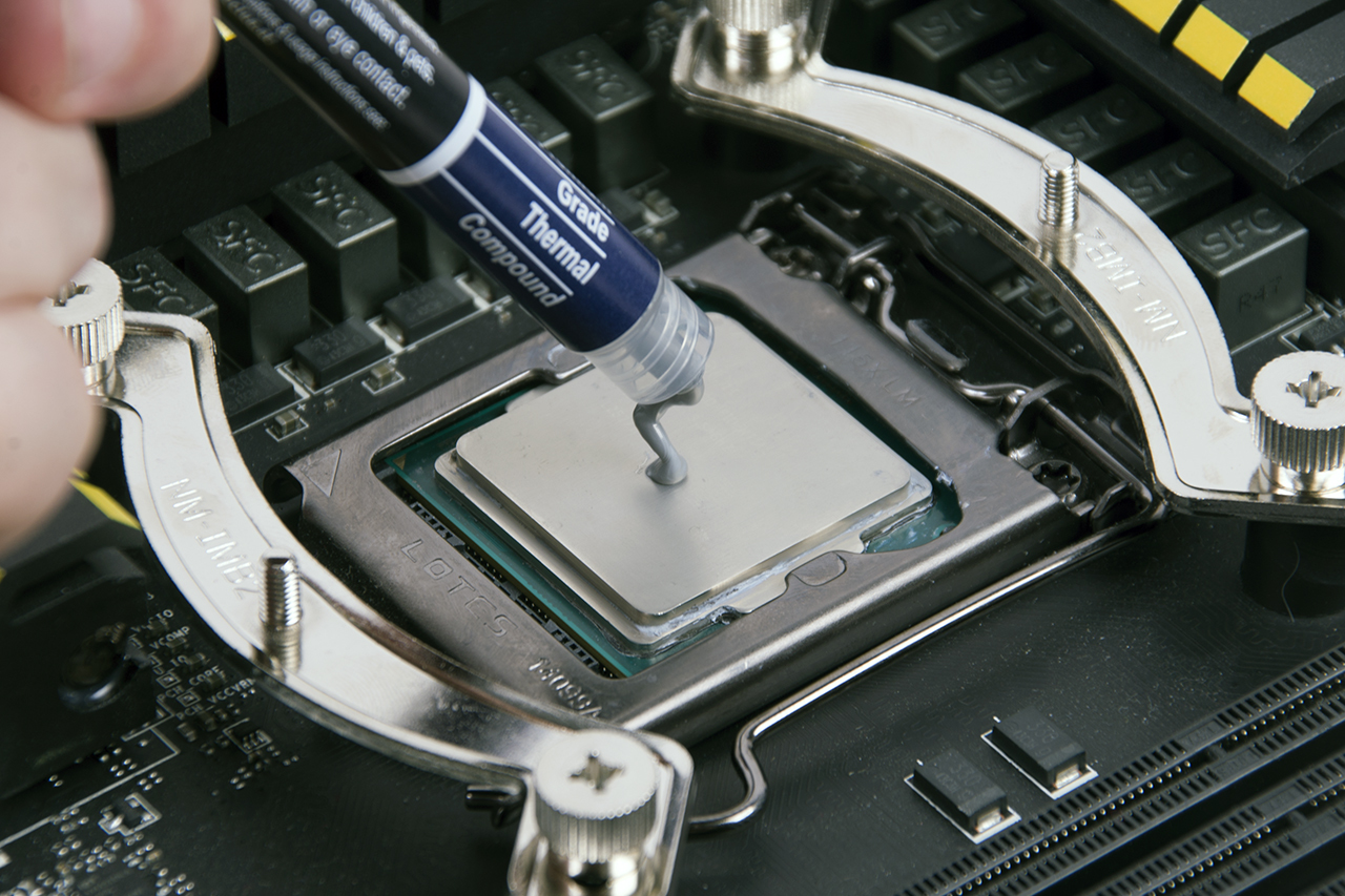 Обычно в комплекте с процессорным кулером идет тюбик термопасты. Бывают случаи, когда слой уже нанесен на подошву системы охлаждения. В первом случае объема этого вещества, как правило, хватает на три-четыре раза. Поэтому, пожалуйста, не выдавливайте содержание всего шприца на процессор. Это заметно снизит эффективность его охлаждения. Достаточно всего пары капель, которые затем необходимо тонким и ровным слоем размазать по площади всей теплораспределительной крышке CPU. Излишки термопасты приводят к ухудшению теплопроводности. Например, КПТ-8, состоящая преимущественно из оксида цинка, обладает теплопроводностью примерно 0,8-1 Вт/м*К. Теплопроводность термопасты АлСил-3, основанной на базе оксида алюминия, составляет примерно 1,6-1,8 Вт/м*К. Есть еще термопасты, в основе которых лежит оксид серебра, они обладают теплопроводностью на уровне 7-8 Вт/м*К. И все равно это рядом не стоит с теплопроводностью чистой меди, которая составляет ни много ни мало 390 Вт/м*К. Очевидно, что толстый слой термопасты только ухудшит общий показатель проводимости тепла от процессора кулеру. И все же термопаста нужна, так как она заполняет микротрещины и небольшие зазоры.