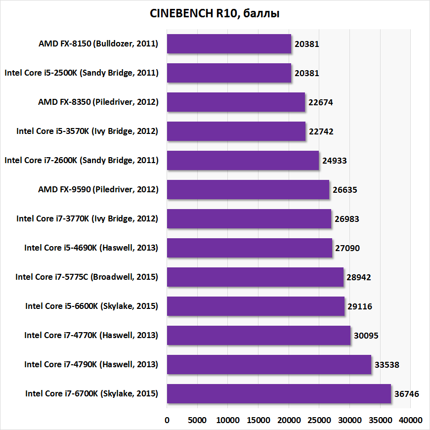 Интересно, что и в других приложениях представители архитектуры Sandy Bridge не выглядят мальчиками для битья, хотя в х86-вычислениях разница между Core i5-2500K и Core i5-6600K может достигать 40%. Подобное отставание опять же легко сократить при помощи разгона.