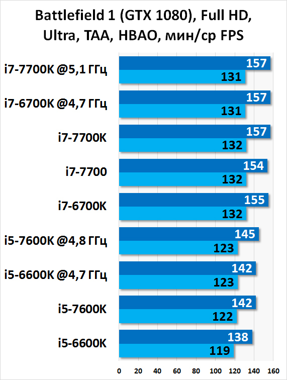 Примеров процессорозависимых игр полно. Шесть приложений демонстрируют, что Core i7-7700K — лучший. Но принципиальной разницы в сравнении с тем же Core i7-6700K нет.