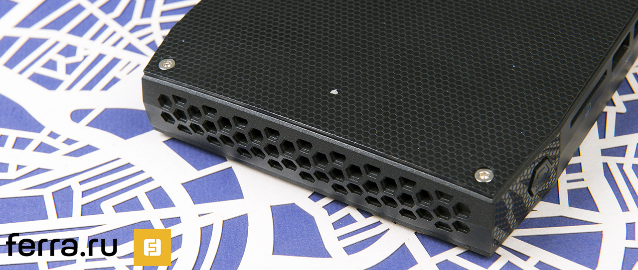 С обеих сторон корпус NUC’а дополнительно оснащен вентиляцией. 45 Вт TDP — это все же серьезный показатель для «пол-литры».