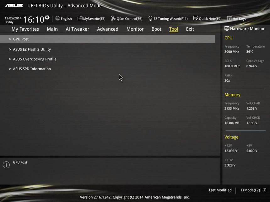 UEFI BIOS Utility, как всегда, изобилует всевозможными настройками по разгону. Все они расположены во вкладке Ai Tweaker. Система работает быстро и стабильно. Нареканий к BIOS у меня нет. Наоборот, прошивки от ASUS можно в какой-то степени считать эталонными.